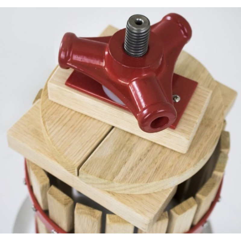 • Felépítés: robusztus acélorsó, fa préselőkosár, gyűjtőtál (átmérő: 275 mm; az élelmiszerekkel érintkezésbe kerülő anyagokra vonatkozó szabványoknak megfelelő felületkezeléssel)