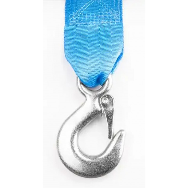 A készülék 8 méteres poliészter hevederrel rendelkezik, amely megfelelő hatótávolságot biztosít a munkavégzés során. A biztonságot a teherhorog nyílással és a rögzítőkar növeli, amely megakadályozza a véletlen kioldást.