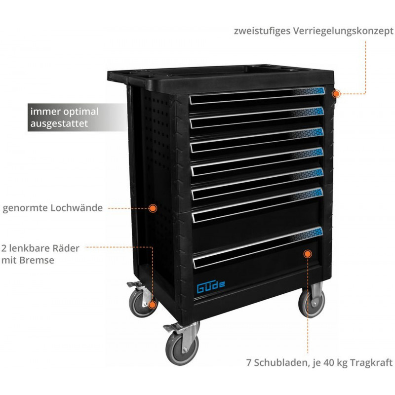 GÜDE GW 7 Black Line Műhelykocsi szerszámokkal 39128