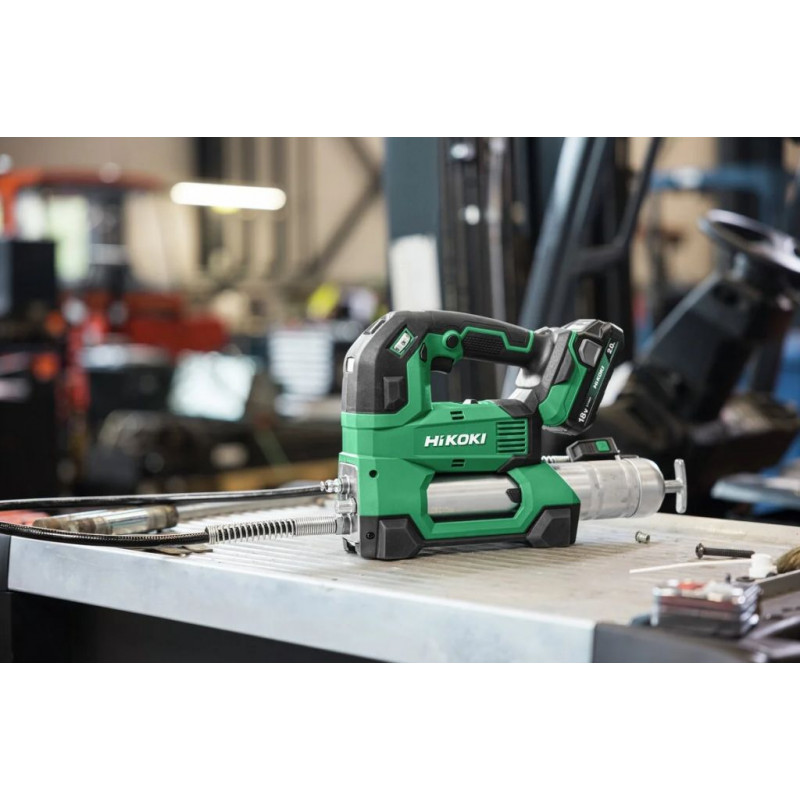 A beépített LED világítás és a tömlő végén elhelyezett LED fény kiváló láthatóságot biztosít még sötét munkakörnyezetben is. Az ergonomikus kialakítás, a vállpánt és a HiKOKI 18V akkumulátoros rendszer kompatibilitása ideális választássá teszi mindazok számára, akik erőteljes, mobil és megbízható zsírprést keresnek.