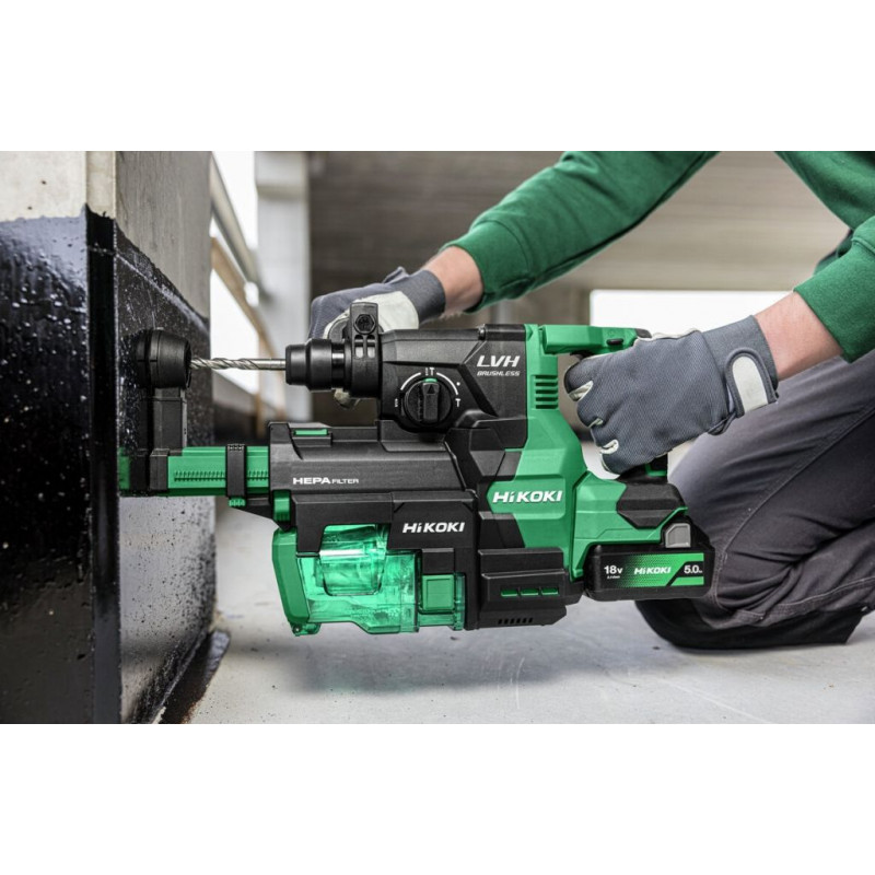 A kényelmes használatról a Low Vibration Handle (LVH) rezgéscsökkentő rendszer gondoskodik, amely jelentősen mérsékli a kézre jutó vibrációt. A beépített LED világítás, az automatikus fúrásidő-rögzítő funkció és a Cyclon HEPA szűrős porelszívóval való kompatibilitás tovább növeli a munka pontosságát és tisztaságát. A HiKOKI DH1826DAW2Z így ideális választás szakemberek számára, akik megbízható és nagy teljesítményű akkus fúrókalapácsot keresnek.
