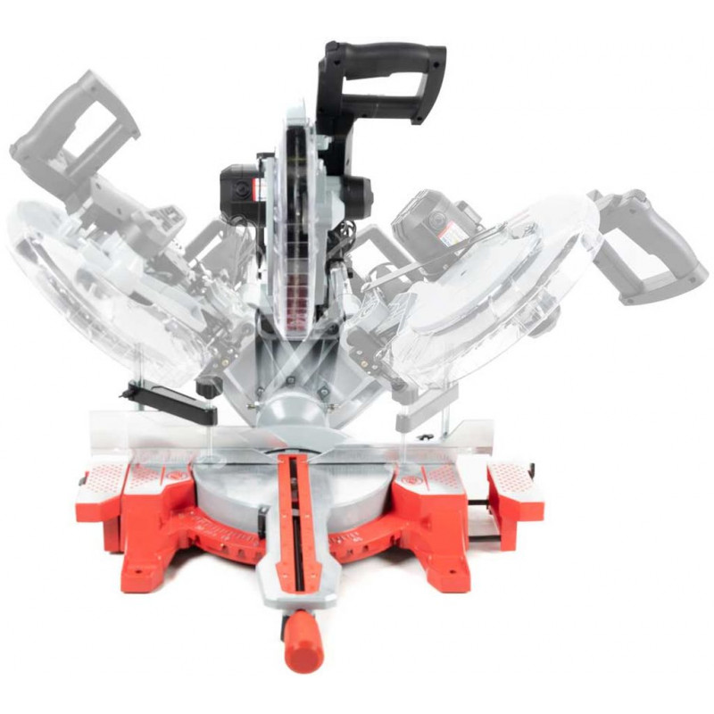 • A fűrészlap balra/jobbra dönthető (-45° / +45°) és elforgatható (-45° / +45°)