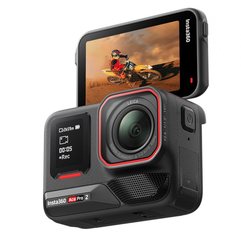 Az Insta360 Ace Pro 2 akciókamera új generációja 1/1,3" méretű érzékelővel és Leica optikával. 2,5"-os kihajtható érintőkijelző. 8K videó 30 FPS sebességgel. 6 tengelyes stabilizálás. Akár 50 MP felbontású fényképek. Vízálló kivitel 12 m mélységig.
