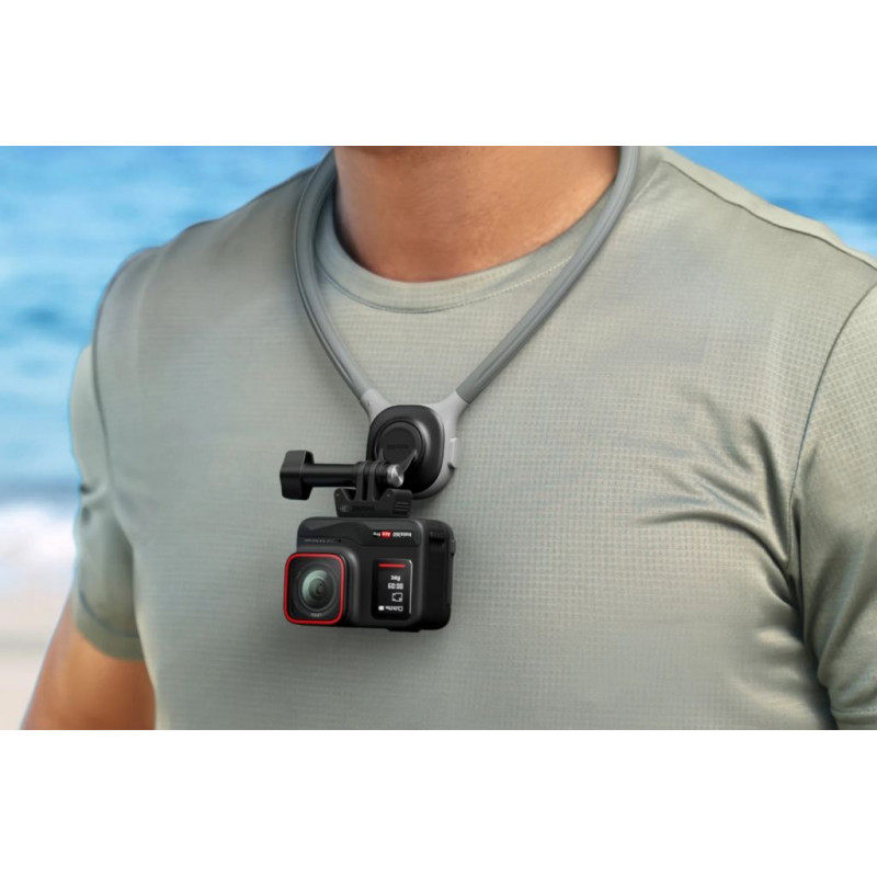 A kényelmes nyaktartó az Insta360 GO 3S, GO 3, GO 2, X4, X3, ONE X2, Ace Pro 2 és ONE RS (4K és Twin kiadás) kamerákhoz lehetővé teszi a felvételek készítését első személy nézetből kézhasználat nélkül. 360°-ban forgatható alapja, gyors zármechanizmusa és puha, légáteresztő szilikonja biztosítja a napi kényelmet.