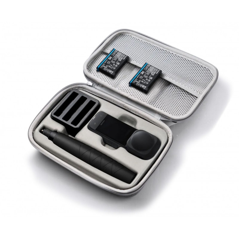 A megerősített tok Insta360 X4 kamerához készült. A tokban elfér az X4 kamera (standard/prémium védőüvegekkel, objektívsapkával és hőelvezető markolattal együtt), 2 akkumulátor, töltőhub és egy 85 cm-es szelfibot.