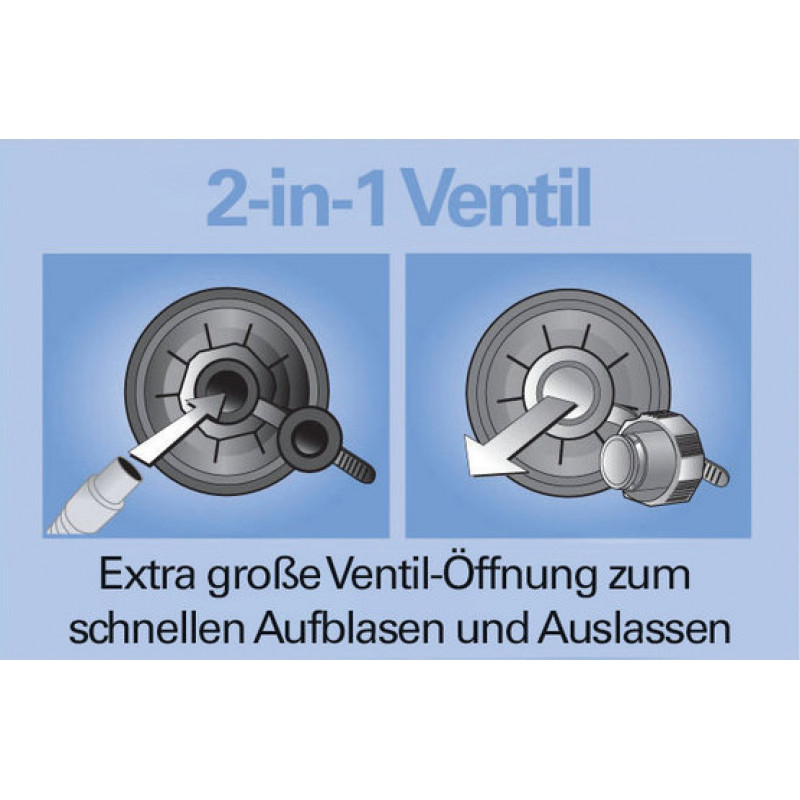 - 2 az 1-ben extra széles szelep a gyors felfújáshoz és leengedéshez