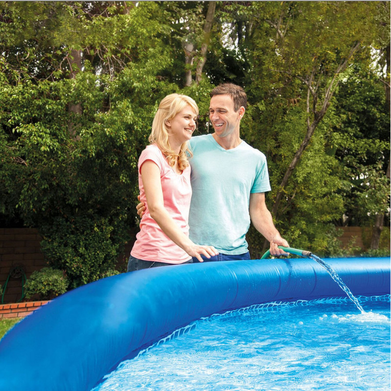 Az INTEX Easy Set Pool úgy lett tervezve, hogy a telepítése rendkívül egyszerű legyen – csak fel kell fújni a felső gyűrűt, feltölteni vízzel, és a medence magától feláll. Nagy térfogatának köszönhetően elegendő helyet biztosít a család és barátok számára, míg az integrált INTEX patronos szűrőrendszer jobb vízkeringést és tisztább vizet biztosít. A szett tartalmaz továbbá biztonsági létrát belépésgátló funkcióval, takarófóliát és alátétet is, így teljes és praktikus megoldást kínál a kényelmes nyári fürdőzéshez a kertben.
