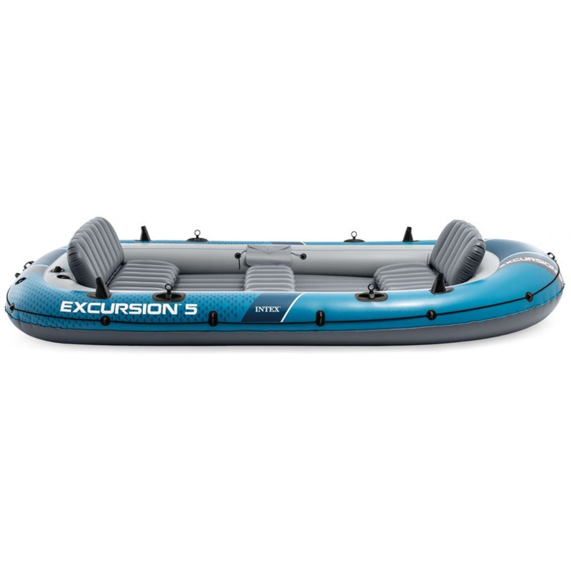 INTEX Excursion 5 Boat 66325NP egy tágas és strapabíró 5 személyes felfújható csónak, amely ideális családi kirándulásokhoz, horgászathoz és szabadidős vízi használatra. A 3 légkamrás kialakítás és a nagy ellenállású SuperStrong™ PVC anyag maximális biztonságot és hosszú élettartamot biztosít még intenzív használat mellett is. Az I-gerendás felfújható padló stabilitást és kényelmet nyújt hosszabb vízen tartózkodás során is.