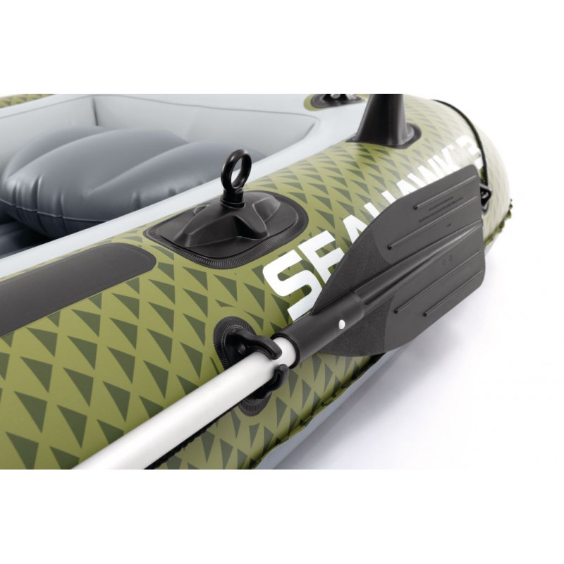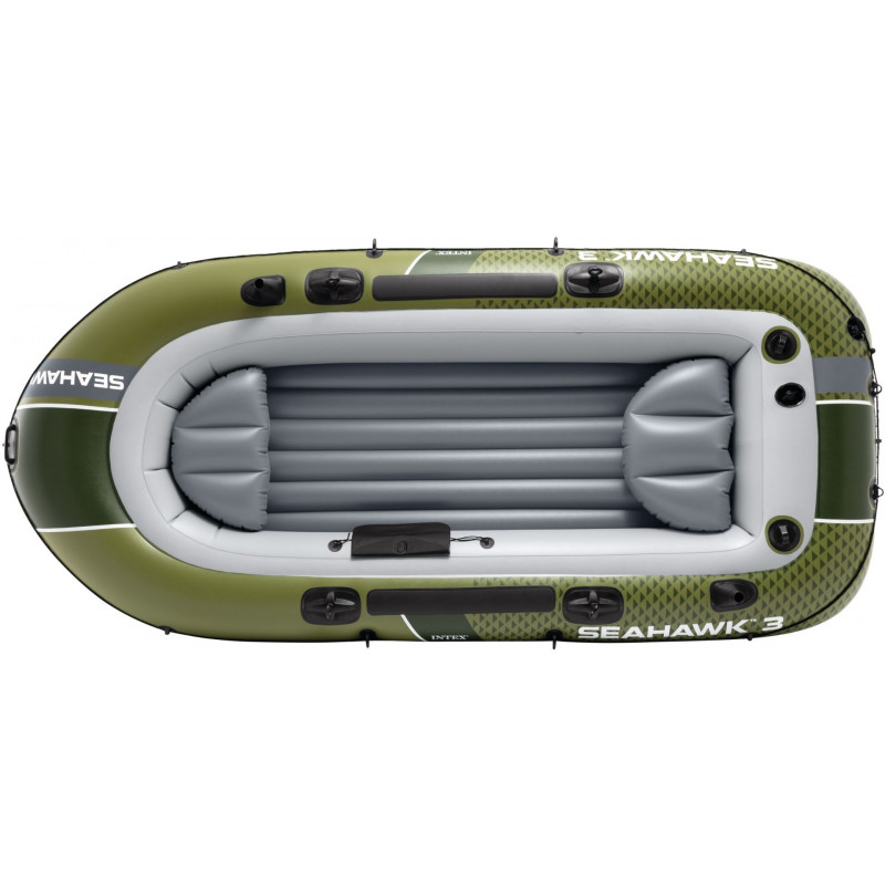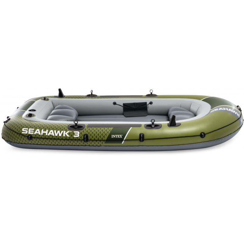 INTEX Seahawk 3 felfújható csónak 3 személy részére ideális választás horgászathoz, szabadidős evezéshez és kellemes időtöltéshez a vízen. Strapabíró kialakításának, nagy teherbírásának és praktikus felszereltségének köszönhetően kiváló stabilitást, biztonságot és kényelmet nyújt tavakon, folyókon és nyugodt tengeren is.
