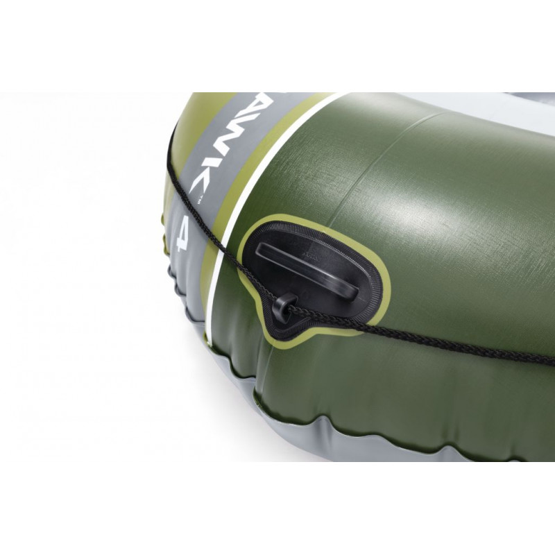 A csónak nagy szilárdságú SuperStrong PVC anyagból készült, amely ellenáll az ütéseknek, kopásnak és a napsugárzásnak. A 3 légkamrás szerkezet növeli a vízbiztonságot – beleértve a főtörzs belsejében lévő kiegészítő kamrát is. Az I-tartós szerkezetű felfújható padló jobb stabilitást és kényelmet biztosít ülve és állva egyaránt. Az olyan praktikus elemek, mint a forgó evezőzárak, beépített horgászbot tartók, körkörösen futó kötél, szilárd orri fogantyú és a motor csatlakoztatásának lehetősége, a Seahawk 4 modellt univerzális csónakká teszik minden vízi kalandhoz.