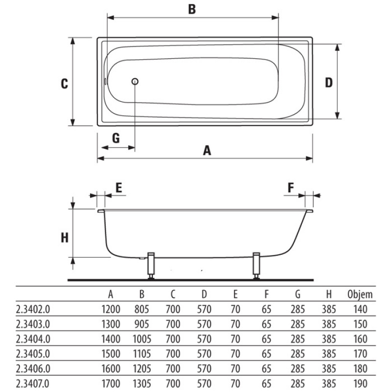 JIKA Riga acéllemez kád, fehér, 130x70 cm H2340300000001Jellemzők: