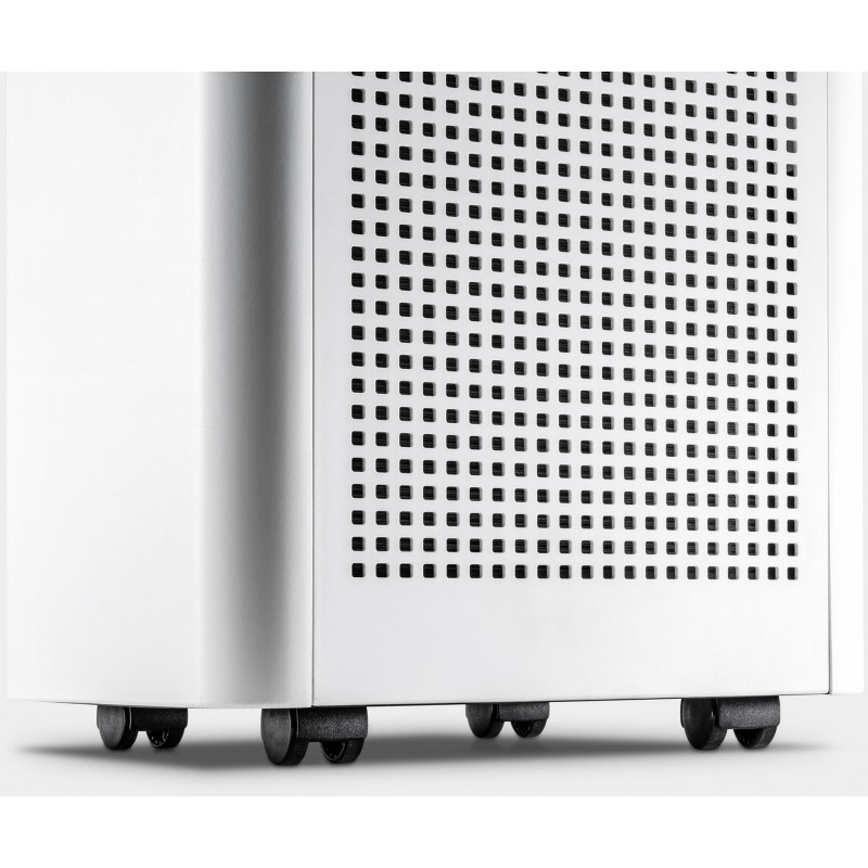 Megjeleníti a hőmérsékletet, a levegő páratartalmát és minőségét, valamint a szűrő és a készülék állapotát is.4 forgó kerék