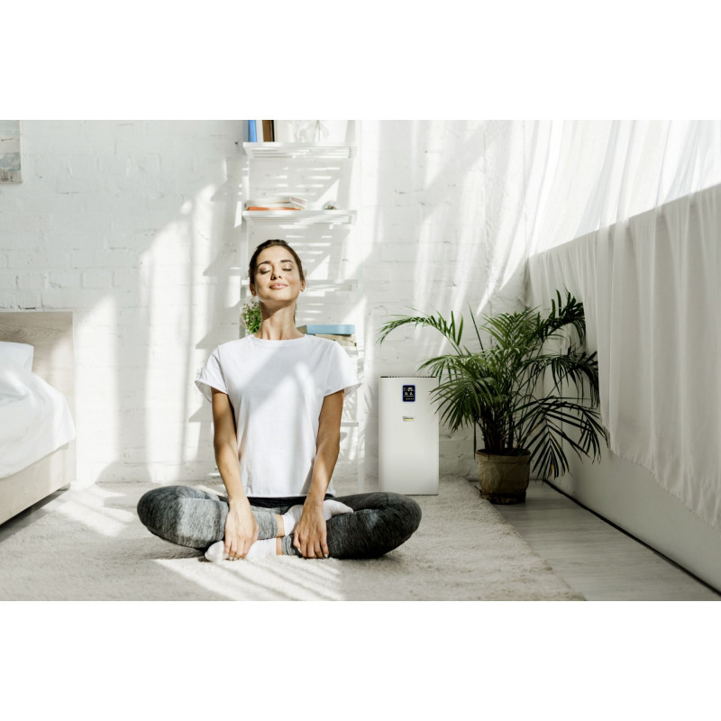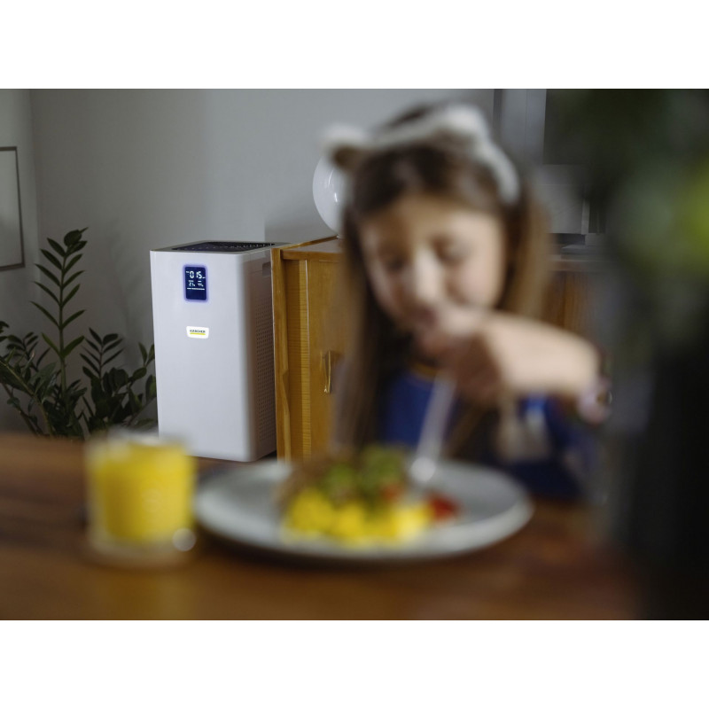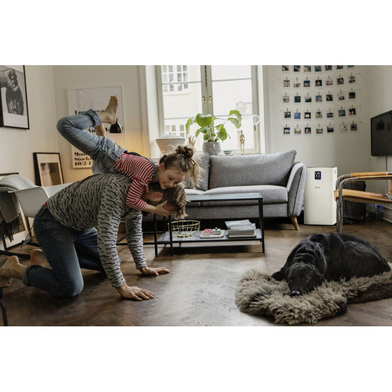 Tökéletes légtisztítás nagyobb beltéri helyiségek, szobák és munkahelyek számára: Az AF 50 légtisztító többrétegű szűrőrendszere révén megtisztítja a beltéri levegőt az allergénektől, a szennyező anyagoktól és a kórokozóktól. A további funkciói közé tartozik: Az aktív szénréteg, valamint egy kijelző, amely alfanumerikusan mutatja a levegő minőségét µg/m3-enként PM2,5 részecskékben, illetve színkóddal is jelzi levegő minőségét, továbbá a hőmérsékletet és a relatív páratartalmat is. A légtisztító több dolog miatt is kiváló választás, ilyenek például: az időzítő funkció, a gyermekbiztonsági zár, az éjszakai üzemmód és az ultracsendes működés, valamint a 0,3 µm-es részecskék esetében a 99,95%-os szűrőhatékonyság, továbbá az automatikus üzemmód kiváló minőségű lézeres érzékelője is. Ez azt jelenti, hogy az automatikus üzemmód és a teljesítményszint is automatikusan a légszennyezettség mértékéhez igazodik. A szűrő élettartama a légszennyezettség mértékétől és a használat intenzitásától függően körülbelül egy év.