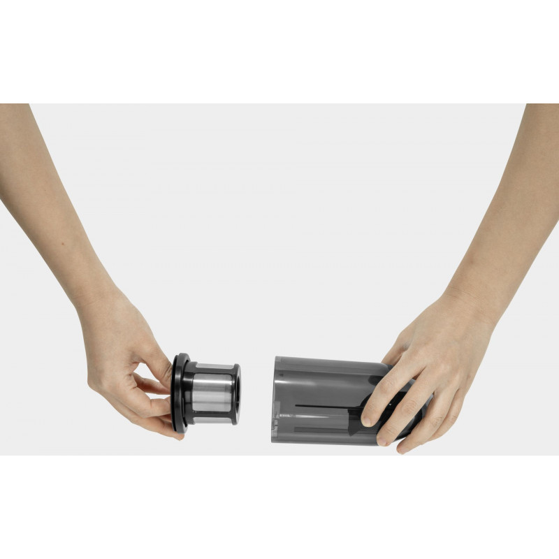Különösen rugalmas a cserélhető akkumulátornak köszönhetően: A CVH 2-4 kézi porszívó mindig használatra kész és kéznél van a konyhában, a nappaliban, a hálószobában vagy a jármű belsejében történő porszívózáshoz. Könnyedén eltávolítja a szennyeződéseket, például a morzsákat, a hajat és a port. A 2 az 1-ben réstisztító fej biztosítja az érzékeny felületek és a nehezen elérhető helyek tisztaságát. Könnyű és kompakt, a porszívó ergonomikus és higiénikus használatot tesz lehetővé a szennyeződéssel való érintkezés nélkül. A kétlépcsős szűrőrendszer tiszta elszívó levegőt biztosít. A cserélhető 4 V-os Kärcher akkumulátor nem része a szállítási terjedelemnek. Kompatibilis minden 4 V-os Kärcher akkumulátoros készülékkel.