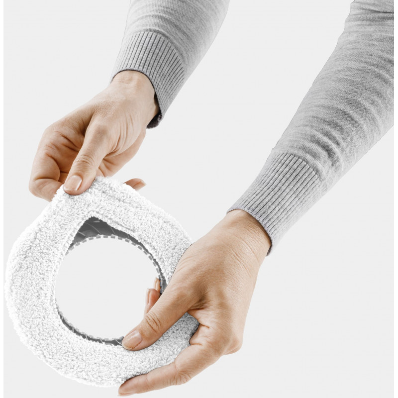 A törlőkendők úgy lettek kialakítva, hogy könnyen felhelyezhetők legyenek a robot forgó tárcsáira, és tisztítás közben stabilan a helyükön maradjanak csúszás nélkül. Mindkét oldalukon használhatók a hosszabb élettartam érdekében, és a rugalmas pántnak köszönhetően a kezelés és a csere nagyon egyszerű. A törlőkendők mosógépben moshatók akár 40 °C-ig öblítőszer nélkül, ami biztosítja hosszú távú, ismételt használatukat és a megbízható higiéniát.