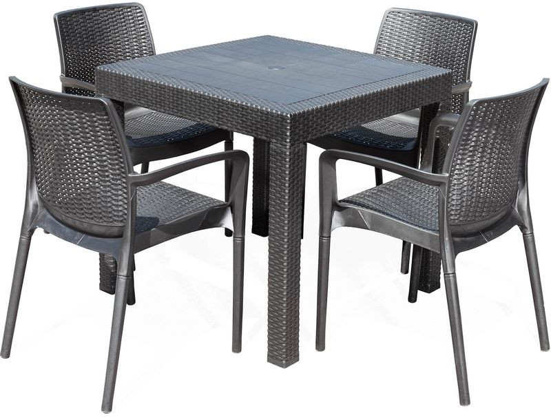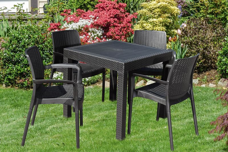 AG21 KAILA QUATTRO kerti bútor szett egy erős asztalból és négy kertiszékből áll. A bútor szett műanyagból készült rattan imitációval.Anyaga rendkívül ellenáll az időjárási körülményeknek.