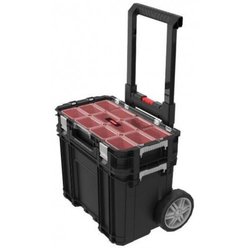 KETER CONNECT gurulós szerszámosláda szett 239996 (172056661)A Keter Connect gurulós szerszámosláda kiválóan alkalmas arra, hogy a belehelyezett tárgyakat - alkatrészeket, szerszámokat - könnyedén lehessen mozgatni, szállítani. A kocsi, a szerszámosláda és a kisalkatrész szervező egy testre szabható rendszert alkot, amiben mindenki úgy tudja elpakolni a holmijait, ahogy a legkényelmesebbnek érzi. A leemelhető felső részben kis méretű, egymástól elszeparált tárolóegységek gondoskodnak arról, hogy az legapróbb tárgyakat is el lehessen helyezni egymás mellett.