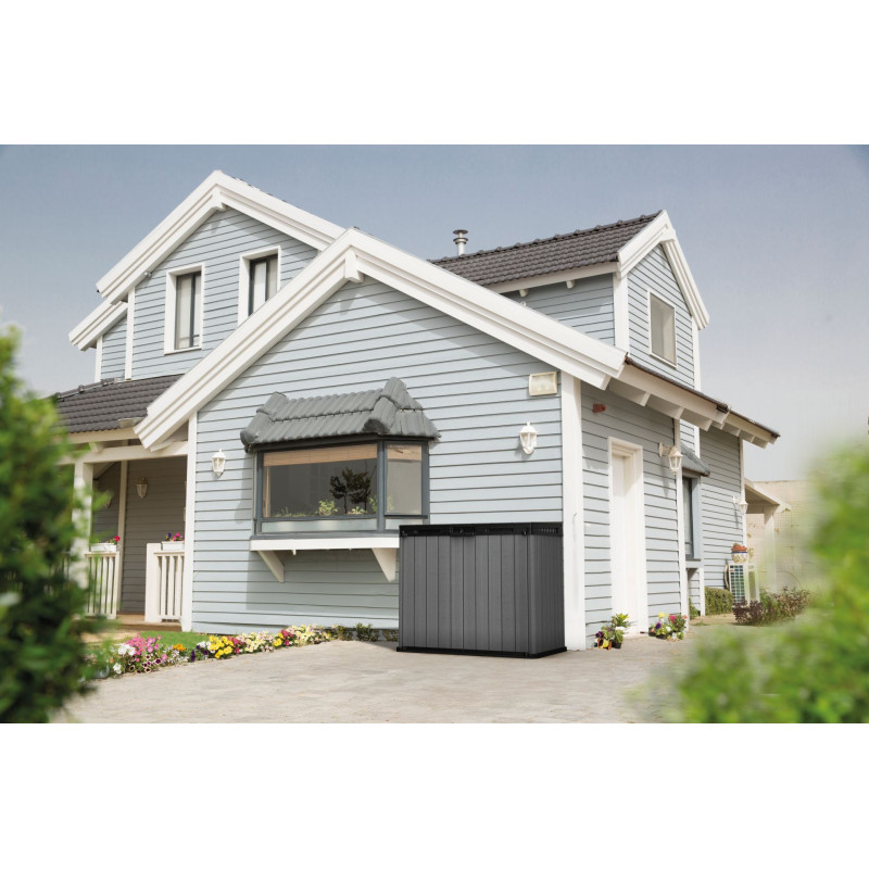 Fedezd fel az Evotech™ kerti láda világát, ahol a tökéletes tárolás találkozik a kiváló funkcionalitással! Minden részletét gondosan úgy terveztük, hogy kényelmét és elégedettségét maximálisan szolgálja. Az innovatív hidraulikus dugattyúk segítségével a tető könnyedén, egyetlen mozdulattal nyitható, így a tárolt tárgyakhoz való hozzáférés egyszerűbb, mint valaha. Az extra kényelem érdekében a láncok lehetővé teszik, hogy a szemeteskuka tetejét a láda tetejéhez rögzítsd, így azok egyszerre nyithatók, megkönnyítve a használatot.