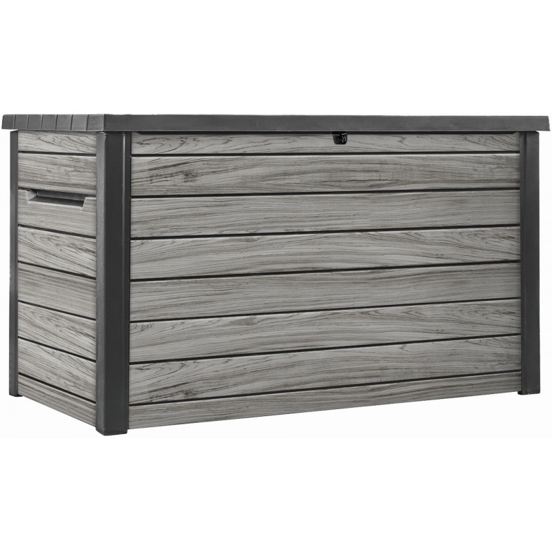 KETER DECO 870L kerti tároló doboz fa hatású kivitelben, 147 × 83 × 86 cm, szürke (storm grey)