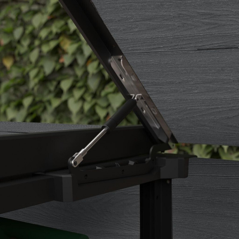 A kiváló minőségű anyagokból készült fedelek nemcsak tartósak, de eleganciát és stílust is kölcsönöznek kertednek. A masszív fém zsanérok és az opcionálisan használható talajrögzítők gondoskodnak a stabil és biztonságos használatról.