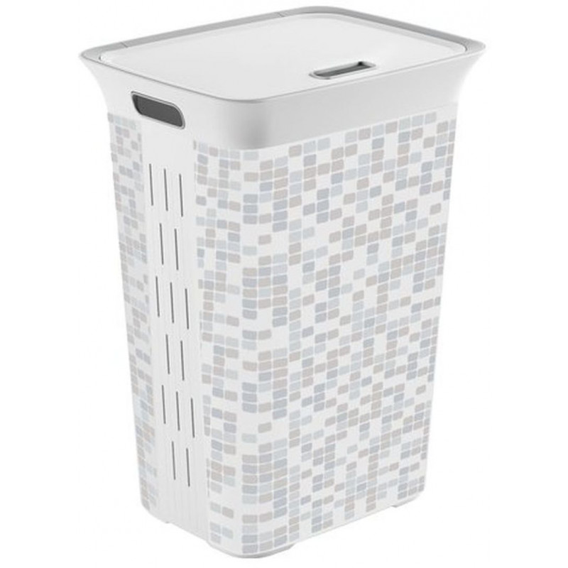 KIS CHIC HAMPER MOSAIC 60L Szennyestartó 44x35x61cmA kiváló minőségű szemeteskosár minden háztartás számára hasznos lehet. A piszkos, használt ruha tárolására éppúgy, mint egyéb tárolásra. Az sem gond, ha nedves ruha kerül bele, köszönhetően a szellőzőknek, a tartóban megfelelő a légáramlás. Egy nedves törlőkendővel könnyedén tisztán tartható.