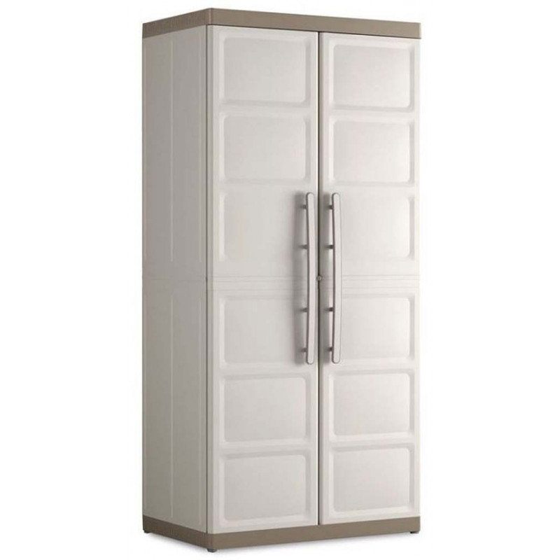 Műanyag tároló szekrény Excellence családból. Kültéri és beltéri használatra egyaránt alkalmas. Tartós, kellemes dizájnú szekrény amely tökéletesen illik a lakás belterébe. Használható ágyneműk, ruhák, tisztítószerek és még sok más tárolására. A polcok közti helyek igény szerint változtathatóak. Karbantartást nem igényel, nem rozsdásodik, nem korhad. Összekapcsolási rendszer segíti az Excellence család szekrényeivel való kapcsolódást.