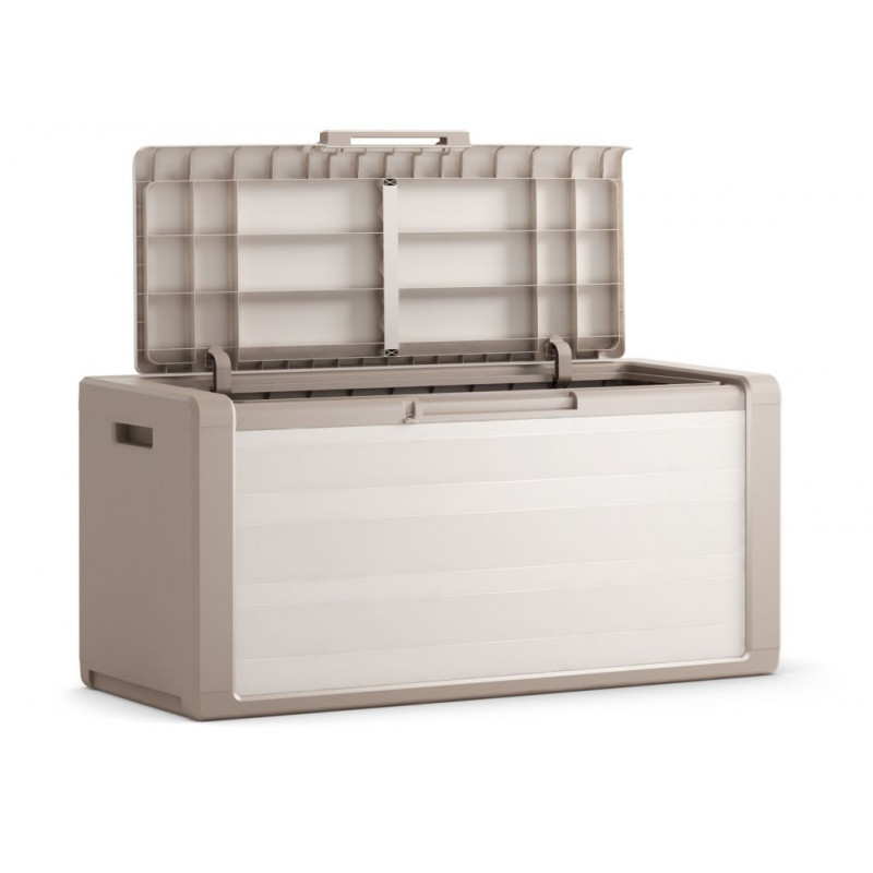 KIS GULLIVER CHEST 300L Műanyag kerti tároló 118x49x55cm bézsKis EVO.CA Chest Gulliver tárolódoboz, amelyben praktikusan tárolhatunk kerti eszközöket, takarókat vagy kerti bútorokat. A tárolót lakattal lezárhatja és elhelyezheti a padláson, pincében vagy akár a garázsban. A láda 118 cm hosszú, 49 cm széles és 55 cm magas.