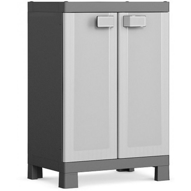 KIS LOGICO LOW Szekrény 65x45x97cm szürke/feketeA Kis Logico Alacsony Szekrény jó választás lehet a párás, víz áztatta helyekre, ahol a fából, és fémből készült bútorok tönkremennének. Kis mérete, és alacsony profil*ja miatt sok helyre ideális lehet. 2 polcos kialakítású, polconként 15kg-os terhelhetőséggel.