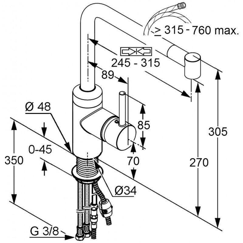 • kifolyó vízszintes vezetéssel (245 - 315 mm)