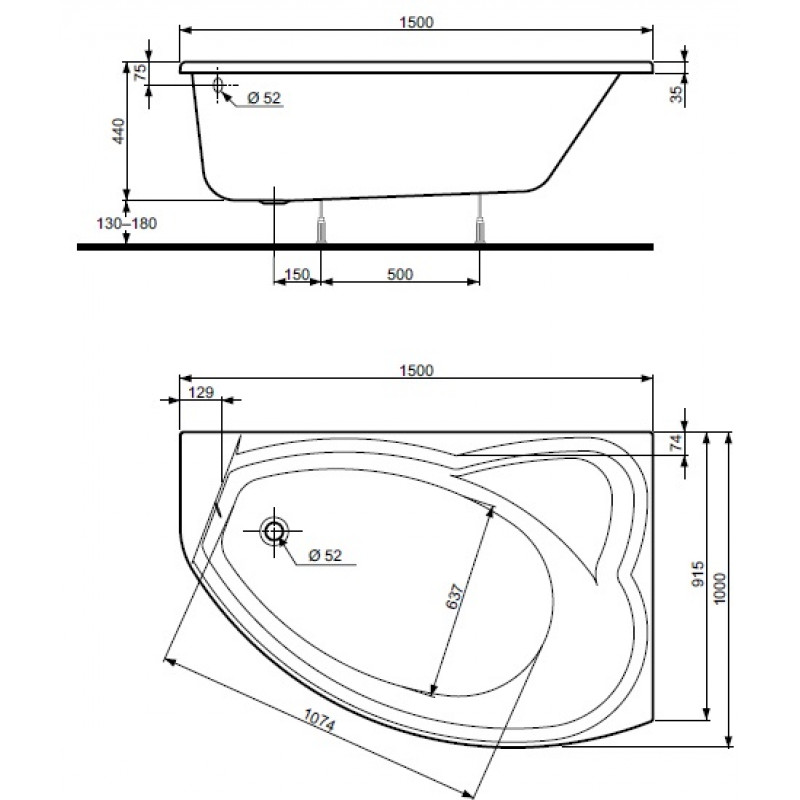 KOLO Agat jobbos aszimmetrikus kád, 150 x 100 XWA0950000Jellemzők:
