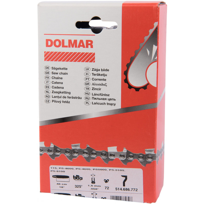 - Pro odeslání do Česka navštivte DOLMAR 514686772 pilový řetěz 45cm, 0,325"1, 5mm