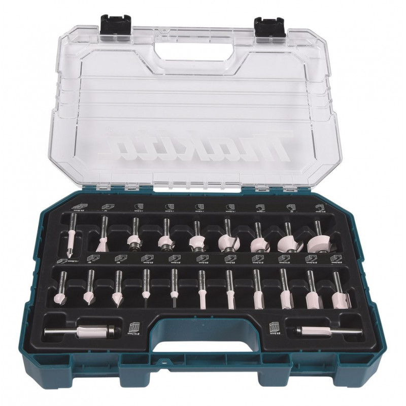 Makita D-74778 22 db-os marókészlet merülő- és egykezes felsőmarókhoz, 8 mm