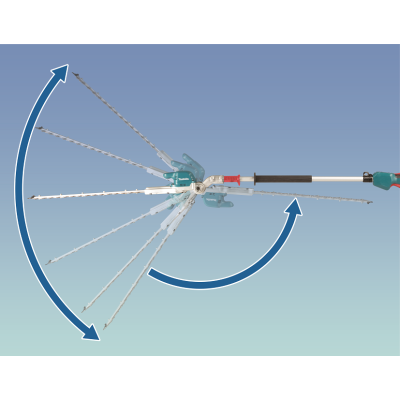 • Könnyű, akkumulátorral működő magassági sövényvágó, melynek teljes hossza 2115 mm