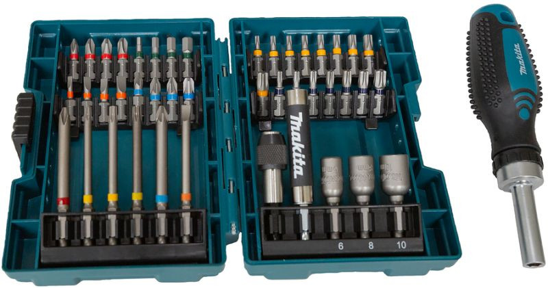 MAKITA E-25096 bitkészlet 1/4" racsnival, 44 db, műanyag dobozban
