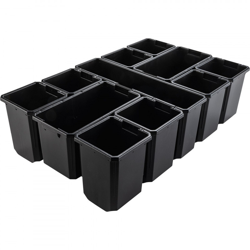 Az öt mély, kivehető tartállyal, átlátszó bordázott fedéllel és egymásra helyezhető kialakítással ideális megoldás az apró alkatrészek intelligens rendszerezésére az építkezéseken.