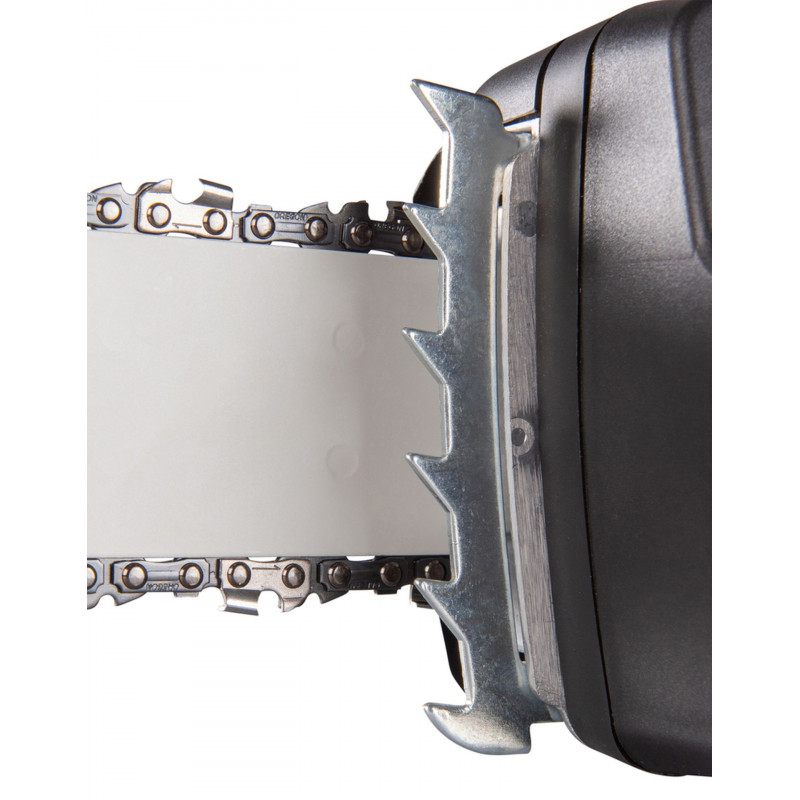 Ez az elektromos motorfűrész az egyszerű kezelhetőséget és a professzionális munkakomfortot szem előtt tartva készült. Alapfelszereltsége a szerszámmentes lánccsere és láncfeszítés, az automatikus lánckenés állítható olajadagolással, az ergonomikus gumírozott markolat és a nagy fém rönktámasz a pontos vágásvezetéshez. A gép rendelkezik továbbá lágyindítással, áramkorlátozóval, elektronikus terhelésellenőrzéssel és a motor túlmelegedés elleni védelmével, amelyek növelik a biztonságot és a készülék élettartamát.