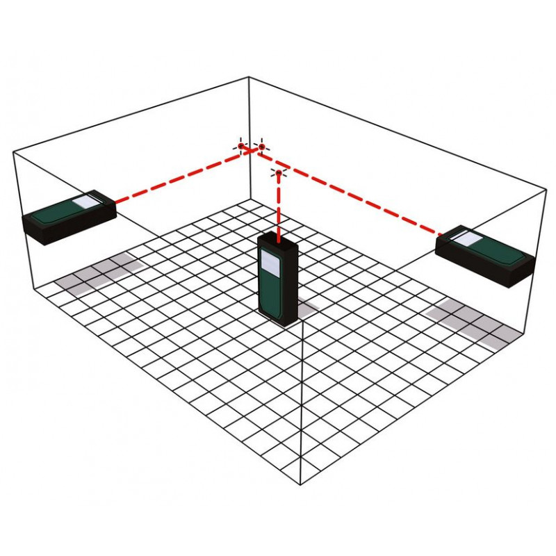• Lézeres funkciók: Hossz / Terület / Térfogat / Tartós mérés (követés) / 1. pitagorasz / 2. pitagorasz / Minimális követés / Maximális követés