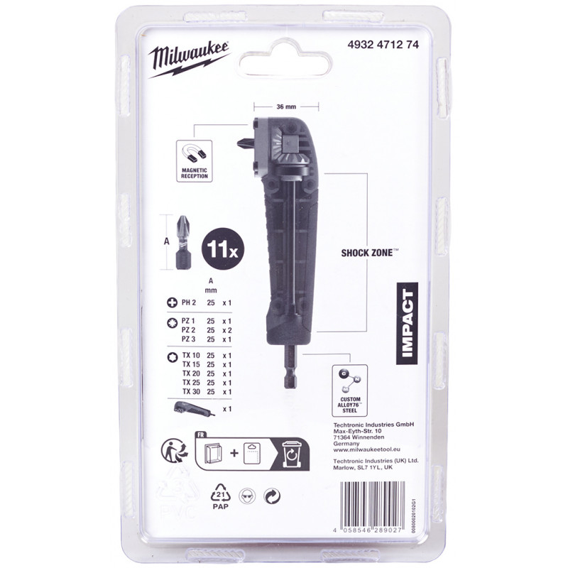 - Pour l’expédition en France, visitez Milwaukee 4932471274 Shockwave Lot de 11 embouts a angle droit