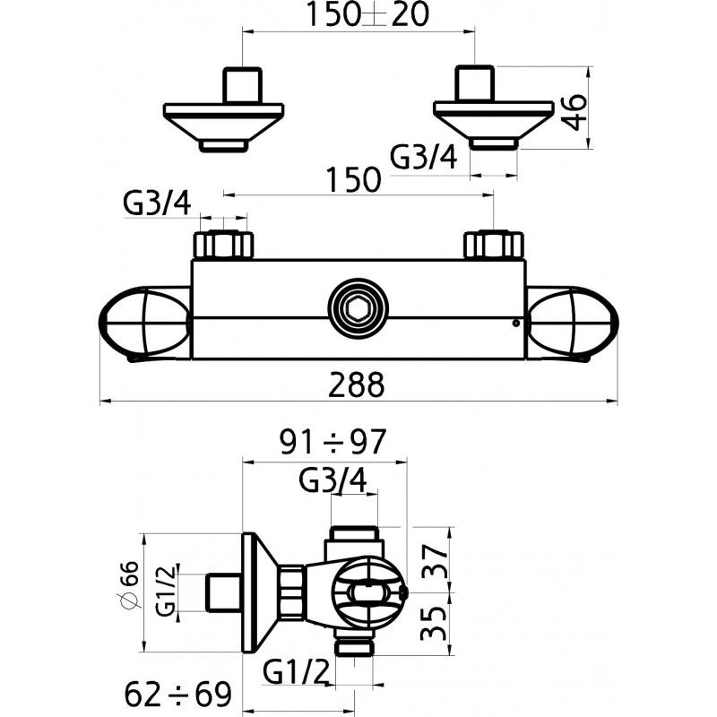NOVASERVIS AQUALUX TERMOSZTÁTOS ZUHANYCSAPTELEP FELSŐ- ÉS ALSÓ KIMENETTEL,150 2762/1,0