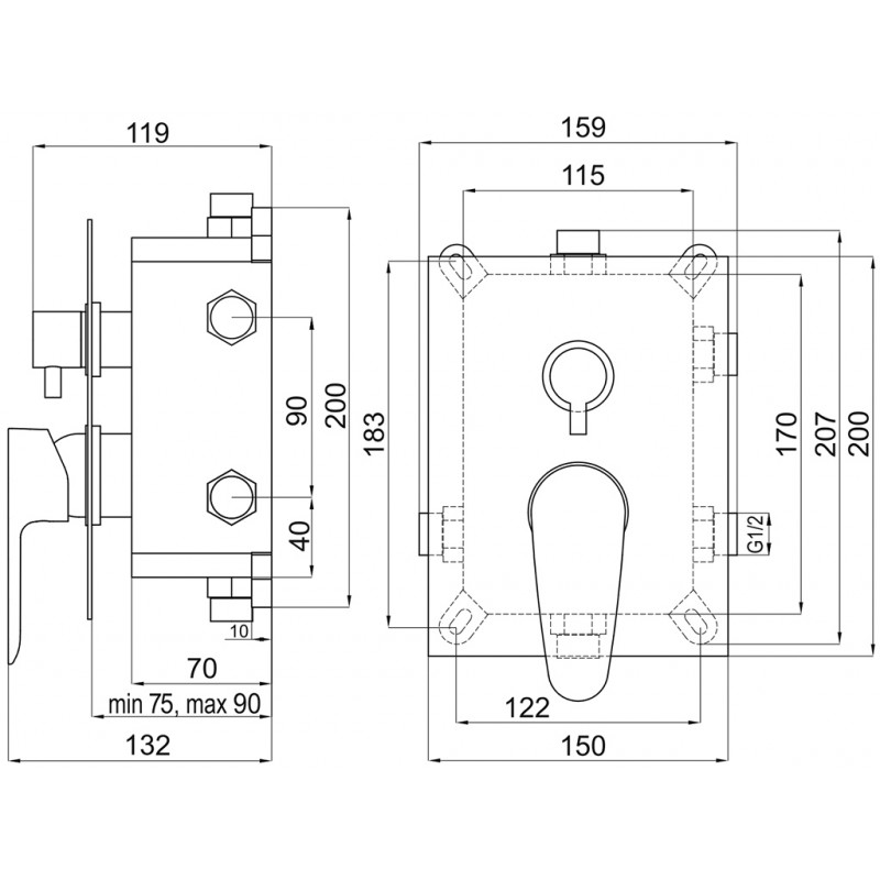 NOVASERVIS SMART FALBA ÉPÍTHETŐ 3 FUNKCIÓS CSAPTELEP, BEÉPÍTŐDOBOZZAL BOX98051RX,0