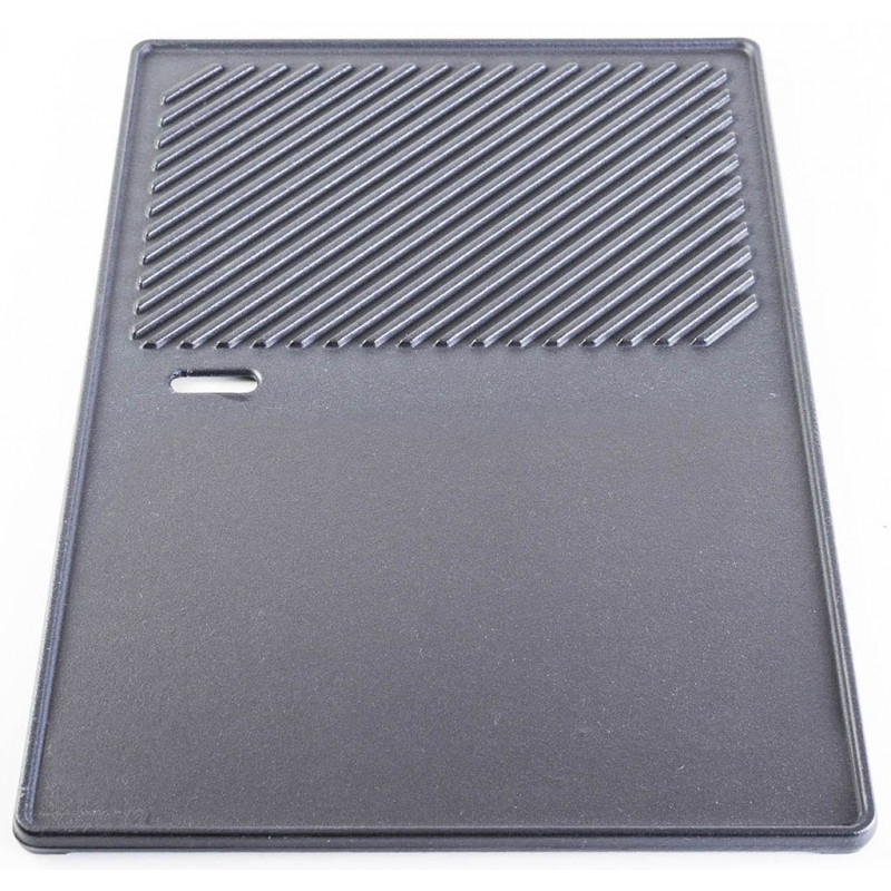 Az öntöttvas az egyik legtartósabb anyag grillezéshez.Ellenáll a magas hőmérsékletnek és a karcolásoknak is. Ez az öntöttvaslemez két részre van osztva. Az egyik fele sima, melyet főleg aszeletelt zöldségek, tojások és sajtok grillezésére használják. A másikfele bordázott, ezt a steak, nagyobb zöldségek és halak szerelmeseifogják leginkább értékelni.