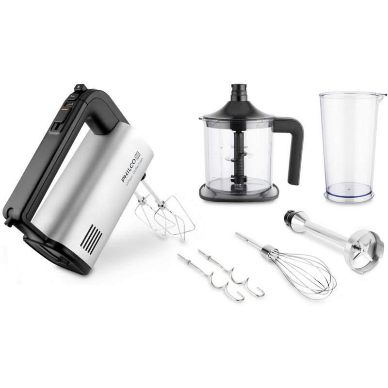 A Philco PHHM6325 kézi habverő a kiegészítők széles választékával gazdagítja a konyhai felszereléseit. Használhatja tészták készítésére, dagasztására, különböző krémek készítésére, de lehetősége van a rúdmixer fej segítségével turmixolásra vagy akár az aprító tálba történő darabolásra. A különböző kiegészítők cseréje rendkívül egyszerűen végezhető el. Az 5 +1 sebességi fokozatot egy 500 W teljesítményű motor biztosítja Önnek.