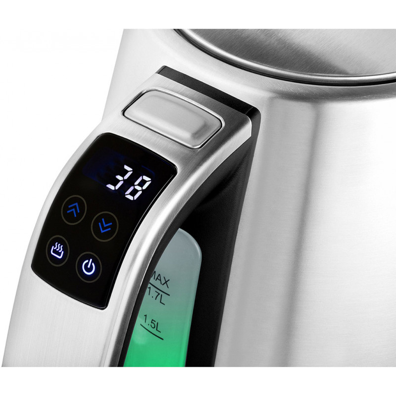A Philco PHWK 1702 vízforraló maximális kapacitása 1,7 liter, így több fős háztartásokba kiváló választás. A tökéletes ízélmény elérésben segít a beépített elektronikus hőmérséklet-szabályozó (30–100 °C). Az elkészült forró ital még 120 percen keresztül meleg marad, köszönhetően a hőmérsékleten tartó funkciónak. A hőmérséklettől függő belső LED világításának köszönhetően, halláskárosultak is biztonsággal használhatják a készüléket.