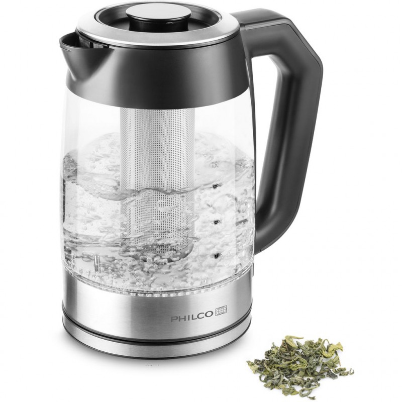 A Philco PHWK 2040 vízforraló segítségével, szinte gyerekjáték egy csésze tea elkészítése. A nemesacél szűrő egyedülálló kialakítása lehetővé teszi, hogy a vízbe merítését követően a víz szabadon áramolhasson a tealevelek között - így biztosítva a tea valódi ízét és színét. A tea fajtájától és a tea kívánt erősségétől függően állítható hőmérséklet. Az ellenálló üvegből készült Philco PHWK 2040 vízforraló a letisztult design-t képviseli. A gombokat a fogantyún helyezték el, ezáltal könnyedén, egy kézzel szabályozhatjuk készülékünket.