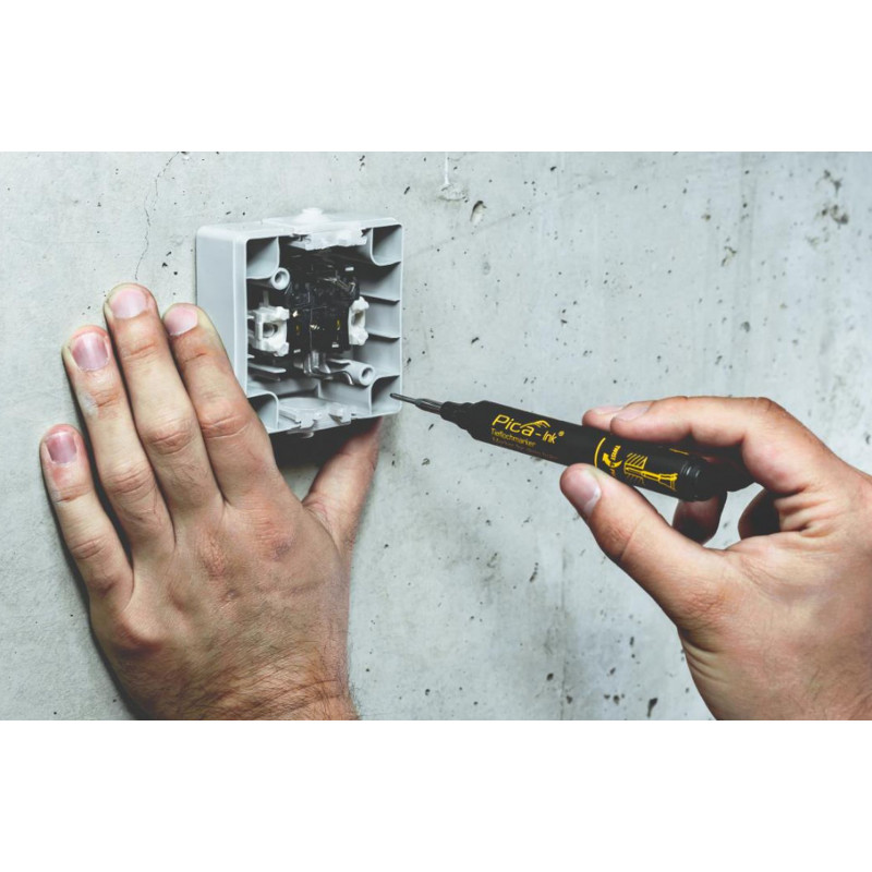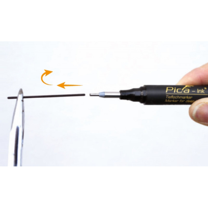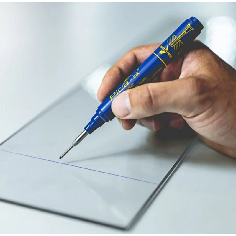 A Pica Ink az eredeti mélylyuk jelölő. Gyorsan száradó tintája szinte bármilyen száraz felületre ír, hosszú hegye pedig ideális a mély lyukak jelölésére.