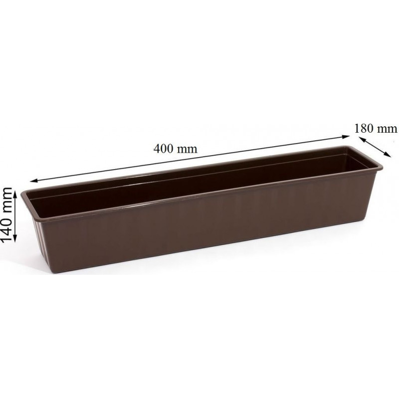 PROSPERPLAST AGRO balkonláda, 40 x 18 x 14 cm, antracit IS400-S433A négyszögletes alakú és a felületén finom bevésésekkel rendelkező Agro balkonláda egy univerzális termék, ami kitűnően használható a legkülönbözőbb típusú növények, virágok, fűszernövények vagy zöldségek neveléséhez. Rögzíteni lehet a balkon mellvédjére, vagy le lehet állítani a kövezetre illetve az ablakpárkányra.