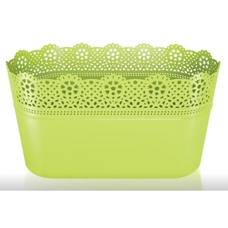 Prosperplast LACE csipkézett virágláda, 28,5 x 13,5 cm citromzöld szín DLAC285