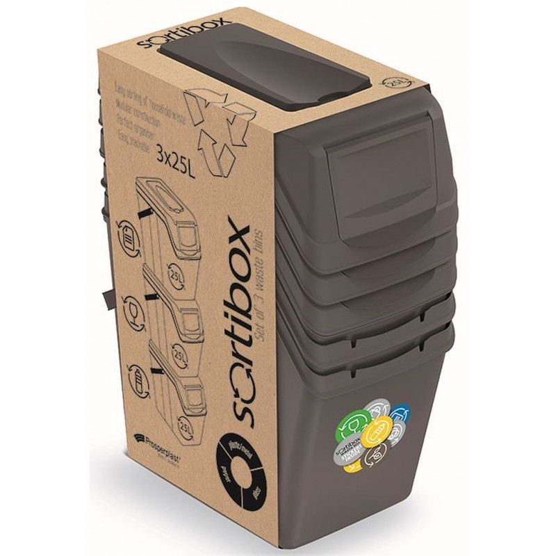 - Pro odeslání do Česka navštivte Prosperplast SORTIBOX II Sada 3 odpadkových košů 3x25l, šedý kámen ISWB25S3