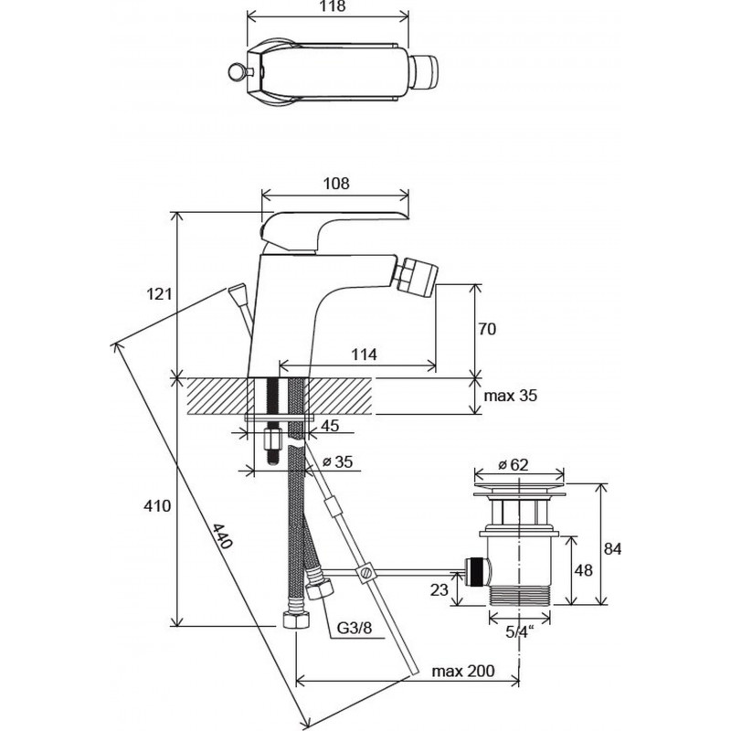 - Csatlakozó tömlő: rugalmas 400 mm, átmérő G3/8