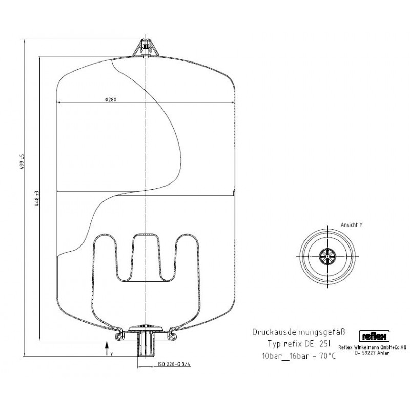 Reflex DE 25 ivóvizes tágulási tartály 25 literes 10 baros ivóvizes vagy használati meleg vizes rendszerekre alkalmazható. A Reflex DE típusú zárt tágulási tartályai ivóvizes-, nyomásemelő és vízmelegítő rendszerekhez készült, fali kivitelben, rögzítőfülekkel.